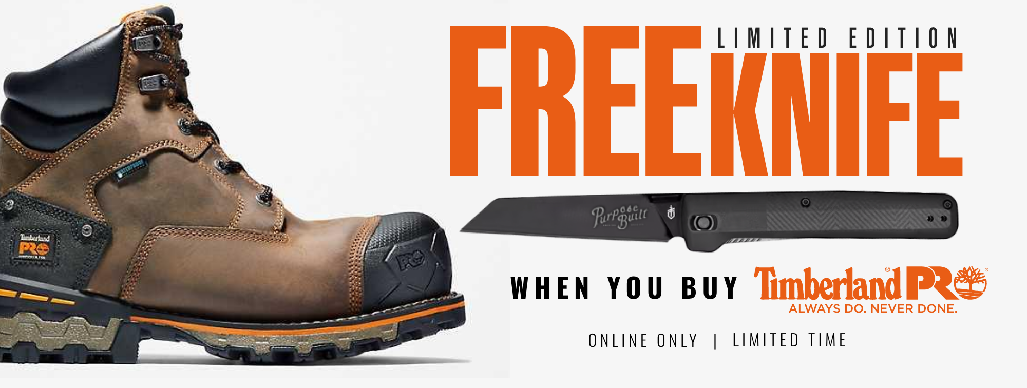 GET A FREE limited edition Purpose-Built Knife WITH PURCHASE OF Timberland Pro BOOTS